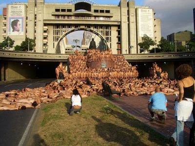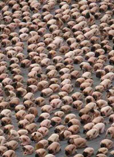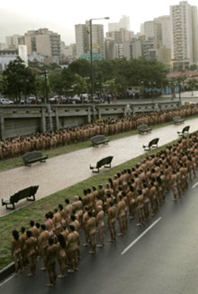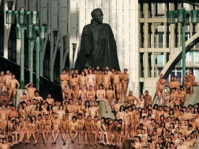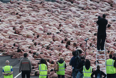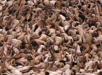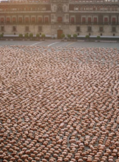 . A record 18,000 people took off their clothes to pose for U.S. photographic artist Spencer Tunick on Sunday in Mexico City's Zocalo square, the heart of the ancient Aztec empire. Tunick, who has raised eyebrows by staging mass nude photo shoots in cities from Dusseldorf, Germany, to Caracas, smashed his previous record of 7,000 volunteers set in 2003 in Barcelona, Spain .