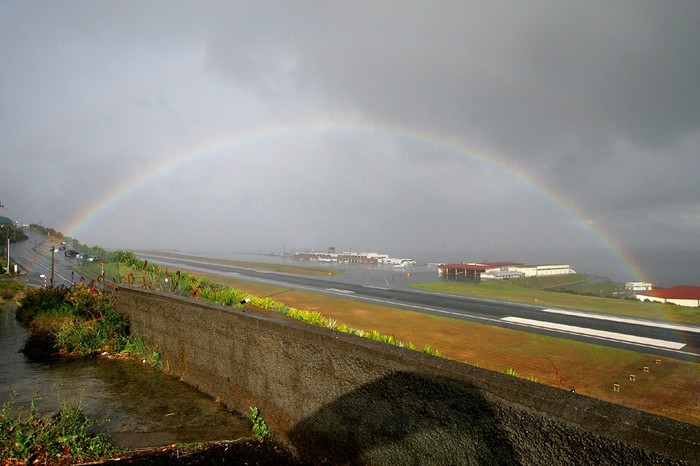 Funchal / Madeira (- Santa Cruz), Portugal If you watch carefully you'll see a second rainbow above the first one.