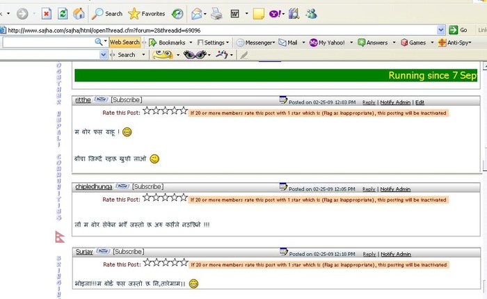 सबै बोर्डधारी लाई चीयर्स अनी अरु सबैलाई नमस्ते, चेली,पुरे,चिप्लेदाजु अनी रिट्ठेलाई नयाँ चौतारीको नयै हाइ न हेलो।। रिट्ठे आँखा चेन्ज गर्न पर्ला जस्तो छ,चौतारीमा चै मै फस भाको जस्तो छ,अजै याहु रे .  हिजोको मम र बिएर सम्जेर आको ,केही नाइ के आज त..  जे होस् फस भइयो अब कहिले काही इलाहाबादी गफ हान्न पाइन्छ नि अब त कि कसो ।