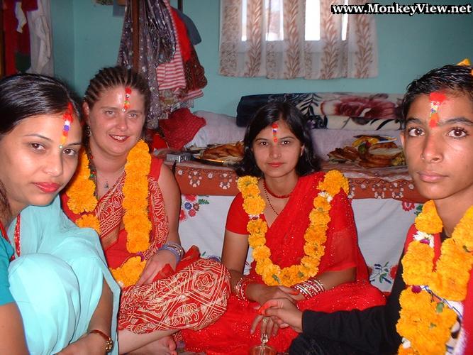 अहिलेको भाइटिका, बायाँबाट क्रमश:, म्याउटिस (पुष्पपुरी), हुसपपी, रुइना र दादा॒ तिनैजना मिलेर दादालाई छोपेर टिका लगाइदिएछन्। :-) :-) -भउते