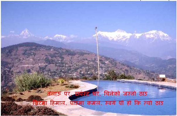 सबै कता गए छन? ओइ ! प्रिती ,इन्द्रेनि ठुल्नानि, चित्रे,सन्कान्छा, कुम्ले सबै कहा हो तिमि हरु? सान्कान्छा त्यो चिल् झै उड्ने तिमि हो?लौ गज्जप् गरेछौ नि त हावा म कावा खाएर। अनि दादा ,मौका मिल्दा हुदि हैन ,मौका मिलाएर आउनु परो पात् बजाउदै चौतारि मा। नेपलेअन् जि हावा ख्वाउने भन्दै पानि को फोटु टास्दिने :) (nice landscape though) सब् केट केटि ले रोल् न् नि बिर्सिसक्या जस्तो छ, सबै ले लेख्ने है त आफ्नो आफ्नो रोल् न्। मेरो २२ हो।
