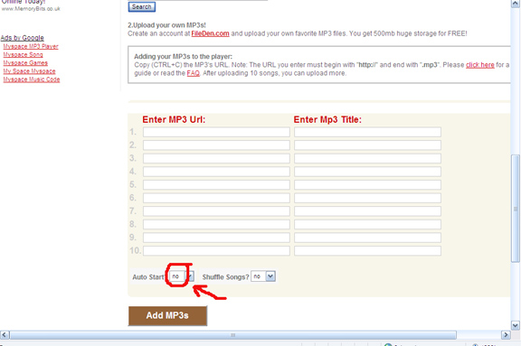 How to disable AUTOPLAY While creating MP3Player in my www.myflashfetish.com, before adding MP3 to MP3Player, select 'no' for 'Auto Start?' option(see picture below)...hope it will stop this thread being annoying... Click here to upload your song on www.fileden.com server. Click here to create MP3Player in www.myflashfetish.com.