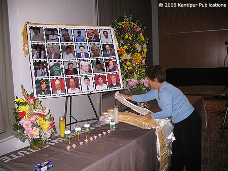 सान्नानीले बनाईदेकी पोस्टरको चित्त बुझ्दो सटुपयोग गरियो आजको शोक सभा कार्यक्रममा। भोली लाऽऽऽऽऽऽऽऽऽऽऽऽऽऽमो कामको चटारो छ, तेसैले सुत्न गईं म त। अहिलेलाई त्यही पोस्टरको मात्रै तस्वीर राखि दिएको छु। अरु तस्वीरहरु र शायद भिडियो पनि आउला, आएसि गाम्लेहुरलाई हेर्न राखदिम्ला।