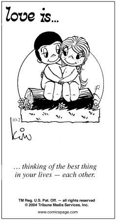 Hey people..... I love to read this cartoon eveyday in the daily paper and wanted to share this with you.....Will you guys kindly find one you like it and post it here......or just say what "Love is............" for you........... (I hope nobody has started this thread before)