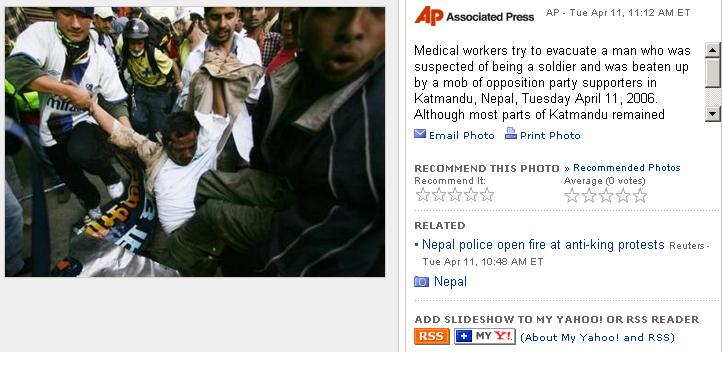 In the meantime, I also heard that Maoists have infiltrated the demonstrations. They have come from outside Kathmandu and have quickly gathered in Gongobu after getting off in the bus park. What's going? Every one is responsible here. Maoists for infiltration with no regard to the danger they pose to the lives of innocent protestors, political leaders for not leading by example, and King for violent retaliation.
