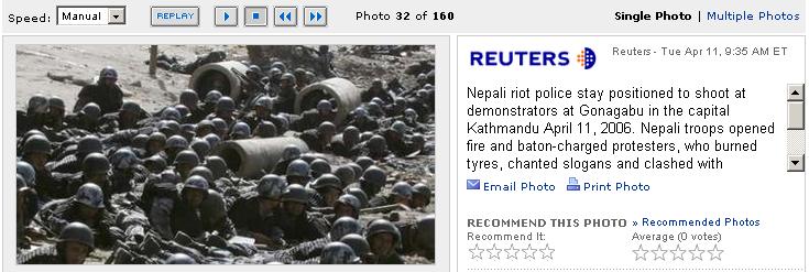 I agree that it created more confusion and there's no immediate solution. But at least, I'm clear in one thing, king must step down if not go. It seems that they fired hundreds of bullets in gongabu. **** Troops baton charged, tear gassed, fired rubber bullets and then live rounds to disperse more than 500 slogan-shouting demonstrators in the Kathmandu suburb of Gongabu, wounding about 100 protesters, a Reuters reporter at the scene said. It was the first time troops opened fire in the capital during the latest anti-king campaign. Emergency medical workers said several among the 100 wounded had sustained bullet injuries . reuters.
