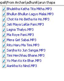 Hi Ruchi, This what I have of Arun Thapa's Songs. Any some you want uploaded, just say so.