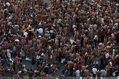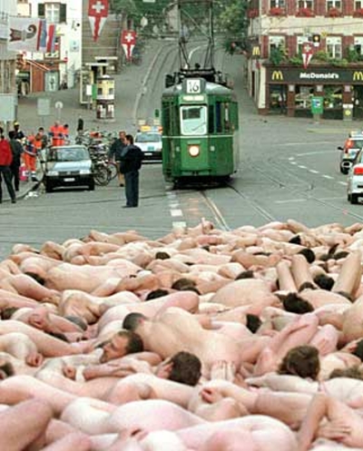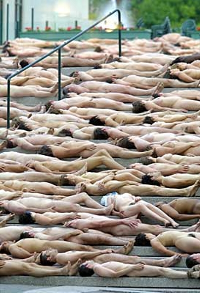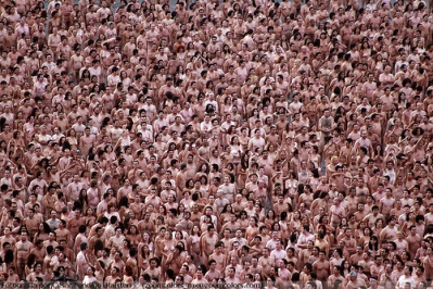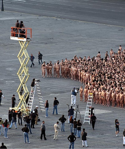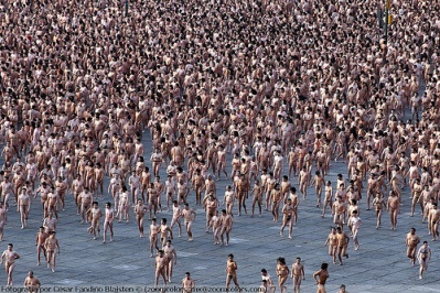 . A record 18,000 people took off their clothes to pose for U.S. photographic artist Spencer Tunick on Sunday in Mexico City's Zocalo square, the heart of the ancient Aztec empire. Tunick, who has raised eyebrows by staging mass nude photo shoots in cities from Dusseldorf, Germany, to Caracas, smashed his previous record of 7,000 volunteers set in 2003 in Barcelona, Spain .