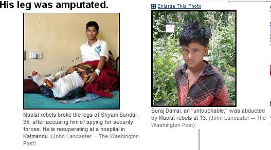 Oh yeah by the way RAMLAKHAN the TALIBAN also say they are democratic too !!! ha ha ha The Suicide Bombers too say they are killing innocent people for democracy too. he he he JUST LIKE YOUR DEMOCRATIC COMMUNIST PARTY ENFORCING CHILD LABOR, RAPING INNOCENT WOMEN WHO DO NOT COMPLY TO YOUR FUGGIN NEEDS, EXTORTING INNOCENT BUSINESSMEN( this shit is still going on and my dad is a businessman in ktm). SO TO TRY AND PAINT A CLEAN PICTURE OF YOUR BELOVED COMMUNIST PARTY IS REALLY STOOOOOOOPID OF YOU. YOU REALLY THINK WE ARE THAT GULLIBLE MORON ?