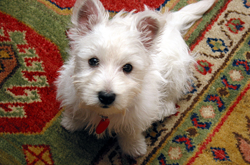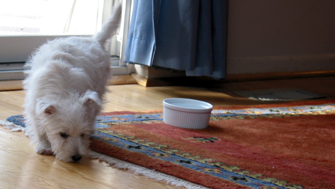 cleo, how is your tiny lil' white ......puppy? :P