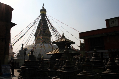Shanti ko pratic Swayambhu.... as seen from Bisal Bajar.... at foreground roof of Talaju temple can be seen.... [sorry frens last one for today...]