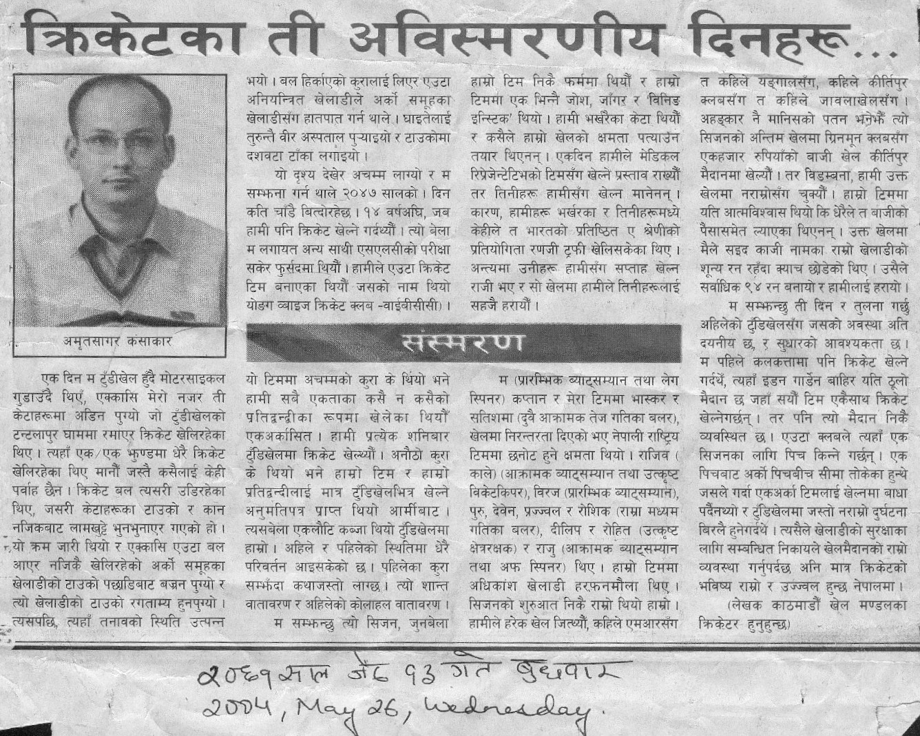 Tara aath aath dai, thanks much for your encouraging words. I do appreciate your love for cricket. Ani one of these days we shall cross our path somewhere in the green ni. TMA ji, dhanyabad for what you had to input. Long live Nepalese Cricket! Uhi Rajeev, Michigan