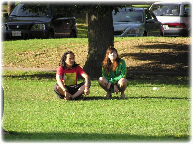 The girl in the middle looks pregnant. Just in case she's not pregnant, I would like to thank her and say, "thank you." I hope she woud not get at at me.