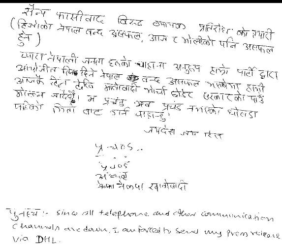 13. It is our desire that democracy be a way of life, politics be conducted in keeping with democratic norms and values, people from all strata of society honestly adhere to democratic ideals and everyone be guided by the interest of the country and people. All Nepalese wish to see our country as a progressive nation, occupying a pride of place in the international community, where democratic ideals thrive in a peaceful environment. It is our belief that upholding human rights not only preserves and promotes democratic values but also enhances a way of life and civilisational values commensurate with the 21st century. Beloved countrymen, 14. Our decision should leave no room for confusion amongst the security personnel and civil servants in discharge of their duties and responsibilities. Today, it is we Nepalese who must take an initiative to ensure a bright future for Nepal and the Nepalese. An independent press serves as the medium for raising the level of democratic consciousness. It plays a crucial role in the promotion of national interests. We believe that the press will make effective contributions in ensuring that democratic norms and values inspire our way of life as well as governance. We are confident that, with this in mind, all those who have faith in multiparty democracy will discharge their duties from their respective places and the people's aspirations along with the country's requirements will be realised through the shared efforts of all the countrymen. 15. Today, the nation has made a firm commitment and a decision has also been taken accordingly. The nation has taken a step forward towards democracy and progress, leaving behind violence, insecurity and conflict. At a time when the country is in the grip of terrorism, all those who believe in democracy and peace must unite. Let us, therefore, be inspired by our collective wisdom and guided by our national perspective. Any nefarious attempts at disturbing peace and security and hindering efforts at making democracy meaningful will not be tolerated either by the nation or people. Yet, in pursuit of liberalism, we should never overlook an important aspect of our conduct, namely discipline. This is also the thinking of the 21st century. We wish to repeat once again that those who cannot do justice to Nepal , those who cannot believe in the sound judgment of the people and those who cannot stand in favour of peace will stand condemned by the motherland. May Lord Pashupatinath bless us all! Jaya Nepal !