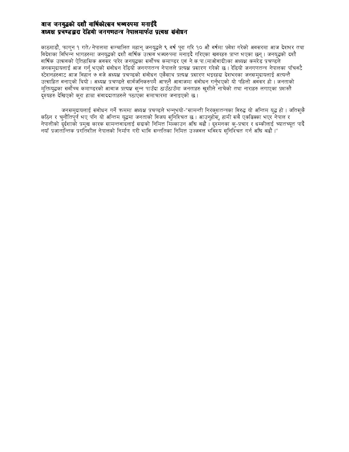 Comred Prachanda ... addressed to the nation through the Radio Janaganatantra.....