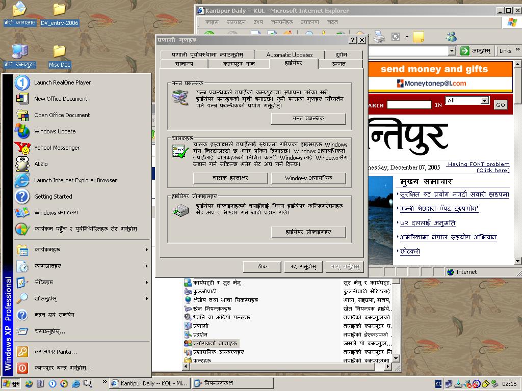 Bhaute, Shree ra Raru ji, Can you please tell me, we can run Windows XP in English and Nepali both platform? I mean once we insall Nepali version, is it possible to run both interface (Nepali and English) on our pc? Please tell me. Also tell me if we can download the Nepali interface of the same or we need CD?