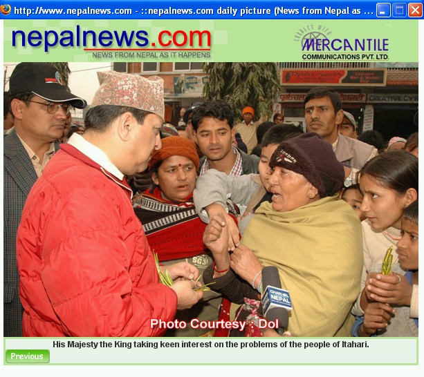 the thing that makes me wonder is that ,,what was this guy thinking when he came up with this caption..it reminds me of the days in high school when this nepali teacher used to explain us the lines from those weird poems,,trying to tell what the poet was trying to say in those lines,,god knows what that poet was thinking when he wrote those senseless lines,,and anyway he was dead by the time we read them,,and so no verifications possible for whatsoever explainations given by our nepali guruji.. anyway my bottom line is how the hell this caption writer knows what our gyanbahadur was doing when this pic was taken,,may be he was thinking who the hell is prachande among these old and pathetic looking creatures,,or who knows he was thinnking "yesta lai pani k mera janta bhannu,,herdai marna lageko jasto cha" or who knows if he was looking for some chwak looking gaunko thiti so that he can take her to pokhara trip... but tyo mula caption writer le chai k lekhyo lekhyo.. may be the caption writer is some psychic mind reader,,,anyway bishnu bhagwan ko mind ko kura read garidine.,,tapai mahan hunuhuncha..jaya hos