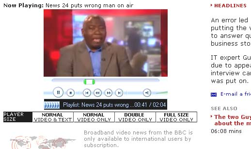 funny indeed. here is the link of the same material in English http://news.bbc.co.uk/1/hi/entertainment/4774429.stm This guy's name was Guy Goma and the news was properly titled 'The Wrong Guy