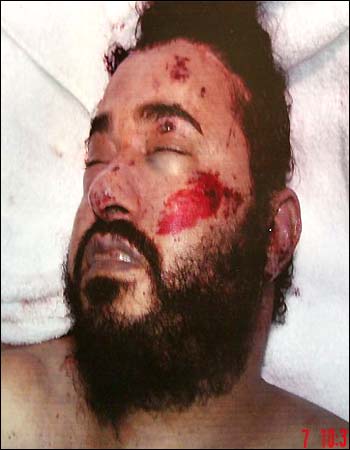 ap98- i think they clean the body when they take it to the hospital to identify who it is. i dont think he was be headed hahahhaa that would be a really unusual beheading his head is still attatched to his neck and sholder dont know abt the rest cuz i cant see in the pic i m glad he is dead. hopefully he is gonna go to hell for killing so many innocent people and brain washing little kids. but sometimes i wonder he must have been THAT ONE kid too whose family died in some tragic event and he was brain washed by someone else. i think good education( not the ones that only teach 1 crap thing) and influence of good adults could have made him take a different direction in life. i feel kinda sorry for him. maybe he never got that opportunity to see things differently.