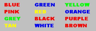 I’m pretty sure all of us have seen this one before….but here it again….. Here is your job: name the colors of the following words. Do NOT read the words...rather; say the color of the words. For example, if the word "BLUE" is printed in a red color, you should say "RED". Say the colors as fast as you can. It is not as easy as you might think!