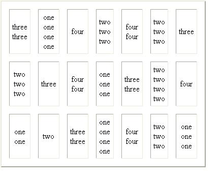 In this experiment you are required to count the number of words in each box, Do NOT say what the word says. Here are two examples: dog dog You should say "Two" because the word dog is shown two times. one one one You should say "Three" because the word one is shown three times.