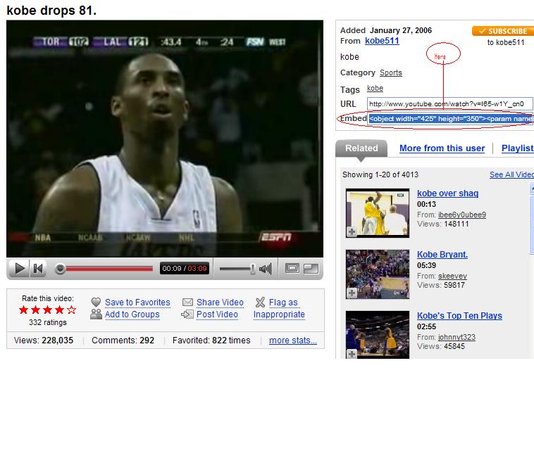 Well, From Youtube.com....once u find the video you want, just copy and paste the link that says "EMBED"........ Hope this helps HT !!