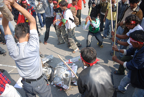 AAPNA INDIA ME JA..OK.............NEPAL IS NOT YOUR FOREFATHERS SACRIFICE...AND YES IT WAS THE KING AND OUR FOREFATHERS WHO SHAPED OUR NEPALS AND NEPALIS IDENTITY............JUST LOOK AT NEPAL NOW........IF YOU SEE GOOD .......I KNOW EXACTLY WHAT KIND OF PERSON YOU ARE....BECAUSE NEPAL HAS GONE FROM BAD TO WORSE SINCE THE KING STEPPED DOWN...................NOW MAOIST ARE ACTING OUT LIKE PARAS...BEFORE IT WAS ONE PARAS...NOW MAOIST AND THEIR THUGS IS LIKE THOUSANDS OF PARAS RUNNING AROUND...................AND FUNNY THING IS NO ONE SEEMS TO COMPLAIN UNTILL A GANG OF MAOISTS LOOT ,EXTORT THEIR OWN FAMILY...........AND IN THE WORLDS POOREST NATION................PEOPLE CAN AFFORD TO VANDALIZE NATIONAL PROPERTY LIKE NOTHING...SALA CHHOOR HARU LAAT KA LAAT HANNA NAPUGEKO....................HERDA SAABAI KHAATEE JASTO CHHA .......ALL HIRED GOONS AND THUGS BY THESE LEADERS............THEY DONT LOOK LIKE DECENT RESPONSIBLE NEPALESE TO ME ..............DO THEY????.........ALL HIRED TO DESTROY , BEAT, AND LOOT ....ANYONE WHO DOESNT FOLLOW THEIR CAUSE......WAH DEMOCRACY WAH