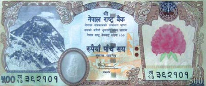 NEW NEPALI NOTES HAS BEEN CIRCULATED IN NEPAL ON THE EVE OF DASHAIN. THE NEW NOTES ARE BEING CIRCULATED FROM THURSDAY. THE NEW VERSION OF THE NOTE WILL BE PRINTED ONLY IN RS. 500 DENOMINATION. THE PICTURE OF THE KING HAS BEEN REMOVED AND HAS BEEN REPLACED BY EVEREST WHERE AS THE CROWN HAS BEEN REPLACED BY RHODODENDRON. http://www.nepalnews.com/archive/2007/sep/sep27/news04.php ![]() src=/sajha/chat/smileys/npflag.gif border=0>