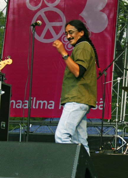 M.K. Gandhi) and sings songs about peace and harmony. His songs encompass all of