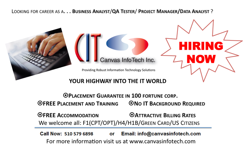 Free IT Training/Placements Canvas Info Tech! H1B Processing!